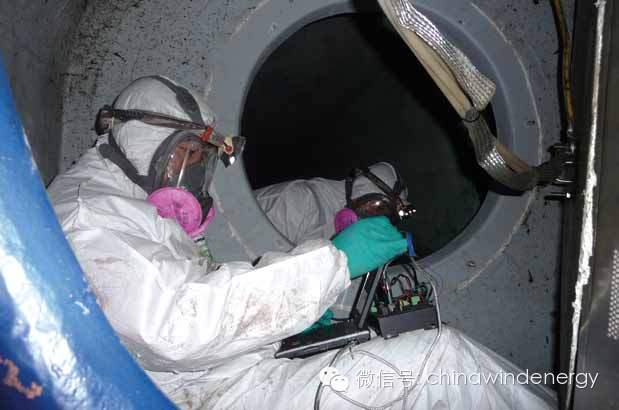 對(duì)風(fēng)電機(jī)組做載荷測(cè)試,要求檢測(cè)人員在塔筒、輪轂、葉片等不同位置裝上貼片,其他位置相對(duì)來說較為容易,但葉片位置的工作在夏天會(huì)很難。首先因?yàn)槿~片中含有大量的玻璃纖維碎屑,人在其中活動(dòng)會(huì)引起碎屑的飄散,如果進(jìn)入肺部,將會(huì)引起嚴(yán)重的肺病,因此必須戴防護(hù)面具。另外因?yàn)檫@些玻璃纖維碎屑的摩擦力很大,而爬進(jìn)葉片前必須通過滿是油污的輪轂,極易將衣服染色和磨破,所以必須穿著完全隔絕外部的防護(hù)服。因夏天氣溫較高,當(dāng)氣溫在30 度的時(shí)候,輪轂內(nèi)溫度能達(dá)到40 多度,將這樣的防護(hù)工作做好后,人體極易產(chǎn)生高溫反應(yīng)。